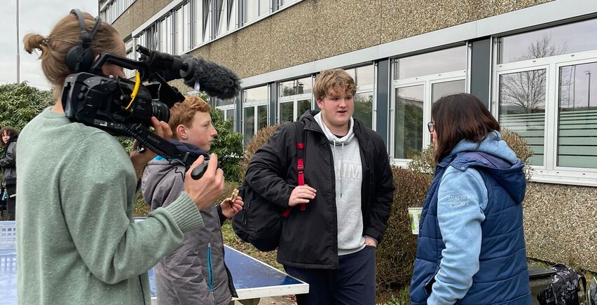 Am 17. Dezember waren wir zu Besuch bei der Esther-Bejarano-Gesamtschule in Freudenberg. Die Gesamtschule nimmt auch am Programm Your Vision Schule NRW Teil und setzt verschiedene Projekte um. Wir haben mit den Schüler:innen und Lehrkräften der Schule einen tollen Kurzfilm gedreht, der im Januar veröffentlicht wird.